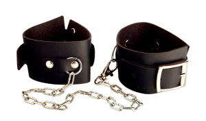 Två läderremmar som kan användas både vid handleder eller vrister. Metallkejda medföljer.