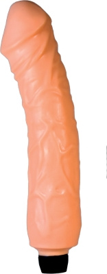 Den här vibratorn är kraftig och lång med sina 36 cm i längden och diametern som är 7 cm som mest, så det är inget för den rädda. Den är beigefärgad och har markerade ådror för ökad stimulans. Ollonet är väl markerat, för ännu mer stimuli. Staven är lite lätt böjd i formen och är tillverkat av gummi.