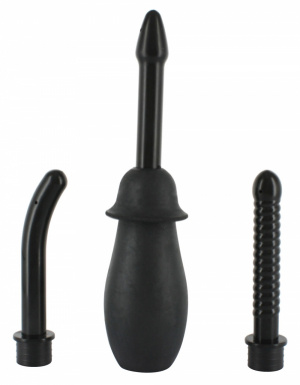 Anal Douche Kit fylls smidigt med vatten (eller önskad vätska), när du klämmer på blåsan kommer vattnet ut ur de två hål som finns upptill på munstyckena. De munstyckena som följer med har olika utformning - ett rakt, ett skönt ribbat och ett som är böjt upptill som möjliggör stimulans av prostatan!