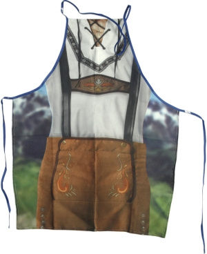 Fräckt förkläde med tryck av manlig tyroldräkt.