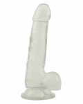 Basix dong är en genomskinlig dildo i ftalatfritt PVC. Mjukt och skönt material som har stor flexibilitet och böjbarhet och anpassar sig efter dina önskemål. Med sugpropp som bas för dig som vill ha händerna fria eller använda den med en strap-on sele. Den har ett markerat ollon och slät pung så att du får lite extra stimulans.