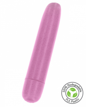 Bio Bullet är inte som vilken bulletvibrator som helst utan en tillverkad i 100 % biologiskt nedbrytbar stärkelsebaserad PLA-plast. En fin design med det rosa materialet och den läppstiftsformande toppen. En mångsidig liten vibrator för stimulans åt både klitoris och andra sköna erogena zoner på kroppen. Behändig att använda hemma men även ta med på resan tack vare sin storlek.