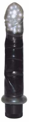 Black Jewel är en mindre stav med sköna steglösa vibrationer. Med härligt glidvänligt jelly-överdrag, ett ollon fyllt med små pärlor (pärlorna rör sig ej) och skaft som har lätt antydan av ådror. Likt en trollstav som kan njutas av både vaginalt och analt.