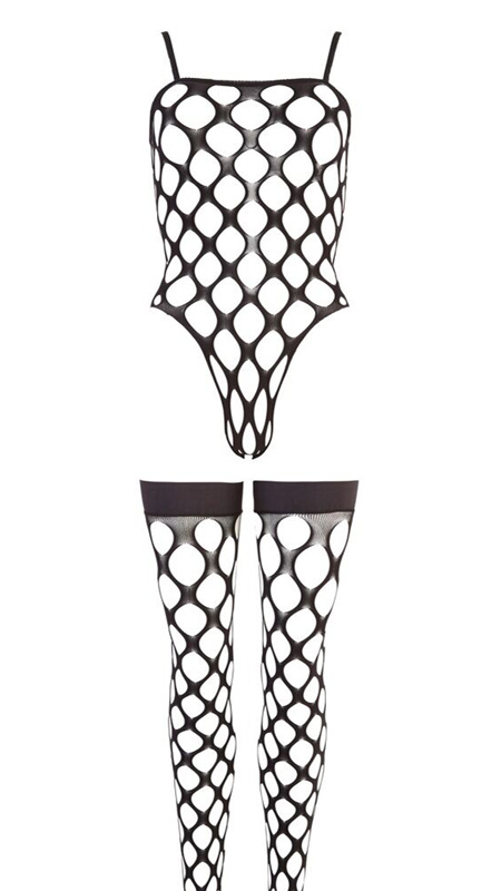 Body and Stockings S-L är ett sexigt set med body och matchande strumpor. En utmanande nät body och strumpor i stretchigt och elastiskt material som avslöjar de mesta... Strumporna har silikonkant för att de ska stanna uppe och inte glida ner. Storlek small-large.
