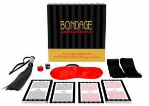 Bondage Seductions är ett kit som låter er utforska dominans, undergivenheten och njutbar smärta. Detta kit med bondagetillbehör innehåller 36 st Bondage Seductions-kort, 2 st breda silkesband, 2 tärningar, 1 st ögonbindel, 1 gummiflogger och spelregler. De 36 korten har olika uppgifter, ideér och anvisningar som tar er med på heta äventyr.