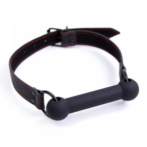 Bone Gag är en stavformad gag som begränsar förmågan att kunna tala under kinkylekar. Staven är i stabilt och kroppssäkert silikon som är skonsamt mot mungipor och tänder. Viss böjbarhet viss. En syndig och snygg design med remmar i svart läderimitation, röda kontrast sömmar och svarta spännen.