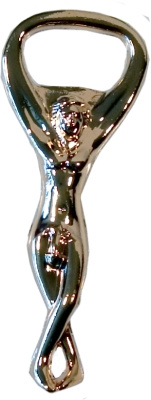 En festlig flasköppnare som är formad som en mans eller kvinnokropp.
