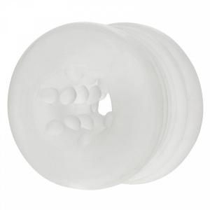 Bumper Stroker är gjord i TPE som är mycket mjukt och flexibelt. Tjock och ordentlig i materialet, som ett mellanting mellan en stroker och en ring. Den är vändbar och har två olika texturer för att kunna ge två unika sensationer med antingen de stora knottrorna eller den ribbade sidan vänd inåt.