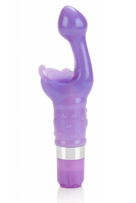 Butterfly Platinum är gjord i mjukt och flexibelt jellymaterial och den lilla fjärilen omsluter klitoris med sina vingar och skönt kittlande antenner. Den korta staven har en utbuktning upptill för att stimulera g-punkten. Längst ner vid handtaget är den försedd med utbuktande hjärtan.