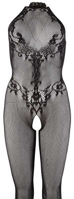 En sensuell och sexig catsuit med vackert mönster med blommor, öppen gren och halterneck. Förför din partner med denna effektfulla och blickfångande kroppsstrumpa. Catsuiten har hel fot, likt en strumpbyxa och är mycket stretchig. Storlek Small-Large.