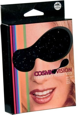 Detta är en lätt vadderad ögonbindel i svart tyg med små glitterstänk, som passar både man och kvinna.