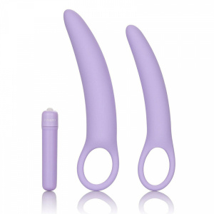 Dilators Vibrerande är ett set med två dilatorer i olika storlekar och en bulletvibrator. De två dilatatorerna är ergonomiskt böjda och gradvis dimensionerade för att varsamt öka insättningskomforten, förbättra den vaginala elasticitetet och återuppliva den sexuell upphetsning. Att kombinera med vibrationer från vibratorn som placeras inuti dilatorerna kan bidra till ökad avslappning och njutning.
