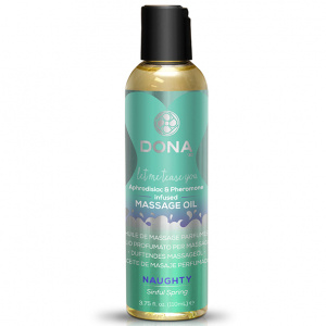 Dona Massage Naughty med doften Sinful Spring är en berusande massageolja för era syndiga stunder tillsammans. Berikad med afrodisiakum och feromoner som väcker er inre lust och huden blir oemotståndligt väldoftande. En massageolja med en vårdande och fettfri formel som lämnar huden underbart mjuk och återfuktad utan kladd. Skonsam för intima områden och skyddar mot irritation som kan uppstå i huden vid t.ex. rakning.