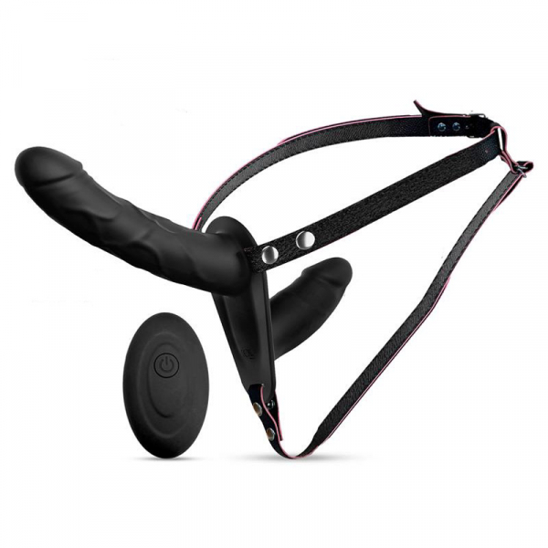 Double Strap Vibb är en strap-on sele med dubbla dildos för bådas nöje. Solida kvalitets dildos med vibrationer i både den större och mindre så såväl bärare som mottagare får njuta. En bonus är den trådlösa kontrollen som gör det enkelt att växla läge efter önskemål! Utmärkt för de som vill utforska roller, rytmer och gemensam njutning utan kompromisser.