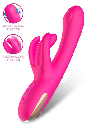 Double Tapping är en innovativ rabbitvibrator som tar njutning till en ny nivå med sina spännande funktioner för utvändig och invändig stimulans. Toppen på staven har två pulserande kuddar, en på vardera sida som hastigt rör sig in och ut för djup stimulans. Klitorisretaren är något alldeles extra, där den utöver starka vibrationer är utformad som ett finger som vickar fram och tillbaka.