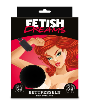 Dream Bed Cuffs är enkel att sätta på plats och tas bort när det önskas. Dra banden runt madrassen så är det klart, varken sänggavel eller annan fästanordning krävs. Tillverkad av nylonband, metallringar och spännen av plast som gör det möjligt att reglera bandens längd och bojornas storlek efter önskemål. Bojorna har ett extra brett band för mer stadga och är utan extra vaddering.