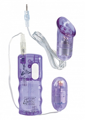 Detta set innehåller en klitorisretare och ett ägg samt en separat kontroll. De är gjorda i genomskinlig, lila hårdplast.