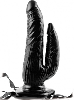 FF Dual penetrator vibe är en strap-on med två stavar, gjord i hudvänligt TPR-material. Den är inte ihålig.