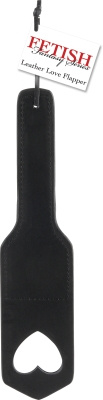 Denna paddel är gjord i svart läder. I toppen är det ett hjärtformat hål.
