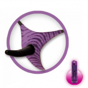 Denna strap-on bärs av kvinnan för att ge penetrerande analsex till mannen samtidigt som den lilla vibratorn i trosan stimulerar hennes klitoris. Dildon är mjuk och smidig och har en böjd utformning för att kunna stimulera prostatan så hans njutning förstärks. Dildons storlek gör den lämplig även för nybörjare.