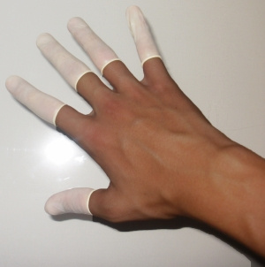 Kondomerna är gjorda i latex och är töjbara för att passa alla fingerstorlekar.