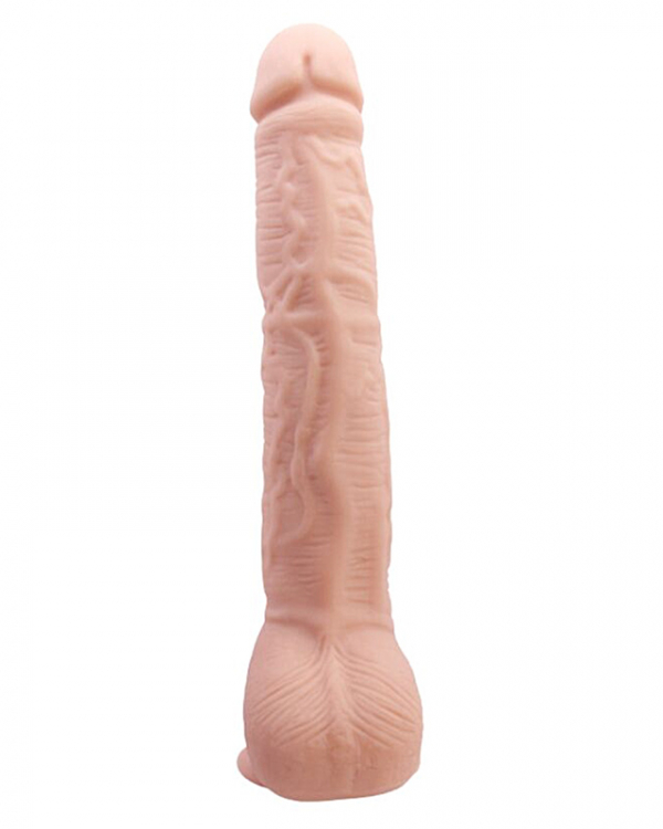 Flexibel Dildo 27 cm är en längre dildo som kombinerar hudlik känsla med naturtroget utseende – inklusive en realistisk pung vid basen. Tillverkad i mjukt och följsamt RealDeal LifelikeSkin (TPR) erbjuder den en flexibel och böjlig upplevelse som anpassar sig efter dina rörelser.