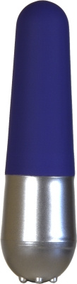 Detta är en mindre vibrator gjord i hårdplast men med en sammetslen yta, som känns mycket behaglig mot huden. Den har en stilfull design och snygg färgsättning i mörklila och silver.