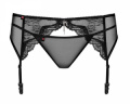 Garter and Thong L-XL är ett sensuellt set med stringtrosa och höfthållare. En kombination av ett svart tunt tyg och blommig spets. Strumpebandshållaren har en vacker utsmyckning framtill med gnistrande stenar. Använd de ihop med dina favorit stay-ups för särskilda tillfällen. Storlek Large-XLarge.