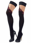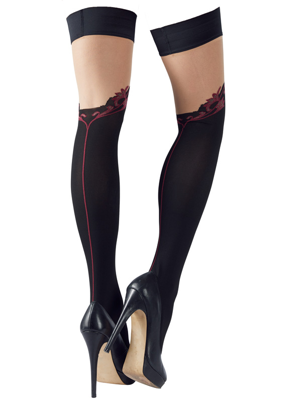 Hold Up Flower S är ett par eleganta stay-ups som stannar uppe av sig själv genom ett silikonband band på insidan. Med bred spets upptill och en dekor runtom i lårhöjd. De är lårhöga och storlek small.