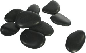 9 st platta, svarta stenar i varierade storlekar för skön "Hot stone massage".