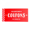 Kärlekskuponger är ett kuponghäfte att ge bort till sin älskade. Häftet innehåller 24 st kuponger som kan lösas in när din partner önskar. Kupongerna har motiv på ena sidan och baksidan är vit. Storlek 10 x 5 cm.