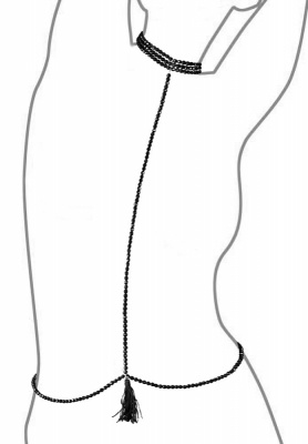 En sensuell och vacker hals- och midjekedja i tre rader med stretchiga pärlor som går runt halsen. Som sedan fästs i bikinikedjan med ytterligare en kedja som kan fästas med en liten karbinhake baktill.