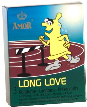 Tre stycken kondomer i naturlatex. Innehåller lätt fördröjande medel så att mannen kan hålla på längre.