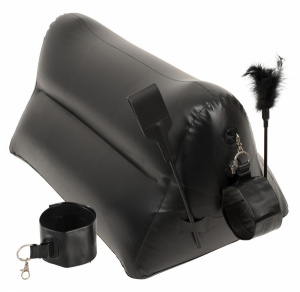 Love Cushion Set gör de roligare ännu roligare i sängkammaren. Setet består av en uppblåsbar positionskudde, ett par fängsel, piska och en fjäderpiska. Kudden ger dig och din partner alla förutsättningar för att hitta rätt position. På vardera sida av kudden sitter öglar som handfängslen kan hakas i och den har fickor där piska och fjäderpiska kan sättas i.