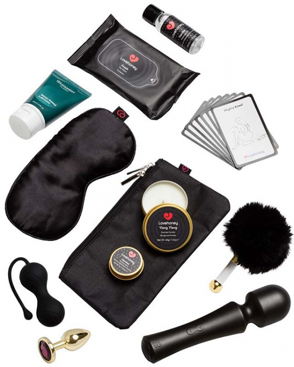 Innehåll: 3 x premiumleksaker, 2 x vibroleksaker, 6 x leksaker, 3 x analleksaker, 3 x apoteksprodukter, 2 x tillbehör, 5 x mjuk bondage