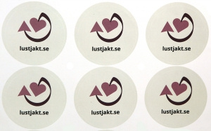 Gör reklam för lustjakt genom att klistra på en rund dekal där du önskar. 12 st på ett ark.