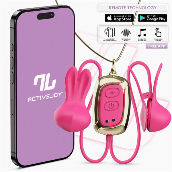 Nipple Clamps App är moderna bröstvårtsklämmor som kombinerar lekfull design med avancerad teknik. Utformade med en kontroll som bärs runt halsen som ett halsband. Klämmorna har knottror på den ytan som sätts på bröstvärtorna för att ge bra grepp. Nyper förhållandevis ordentligt. Med 10 olika förinställda vibrationslägen som kittlar, stimulerar och förför. Men de går också att styra de via ActiveJoy®-appen på mobilen. Perfekt för dig som vill utforska sensuell njutning på ett nytt, spännande sätt.