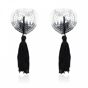 Nipple Covers Tassle är ett par nipple pasties som kommer pryda och framhäva dina bröst som en erotisk utmsyckning. De är hjärtformade och klädda i silvriga paljetter. Den svarta tofsarna gör de än mer blickfångande och sensuella. Självhäftande baksida. 2-pack, passar de allra flesta i storlek. 5 x 5 cm. Tofsarnas längd är ca 11 cm.