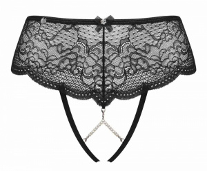 Pearllove är en sensuell och vacker trosa i bred mjuk spets som framhäver dina höfter. Trosan har stretchiga band som är dekorerade med vackra pärlband som fångar blicken. Pärlorna går att knäppa upp och ta av om man så önskar.