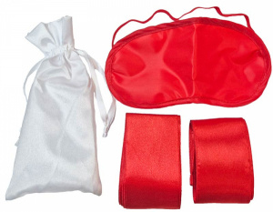 Pleasure Kit är ett set med en ögonbindel och två satinband för handleder och vrister. Tillför mer spänning i sängkammaren genom att utelsluta synen med ögonbindeln och ta rörelsefriheten genom att binda ihop eller binda fast händer och fötter. Ögonbindel är av enklare typ med resårband som håller den på plats. Sidenbanden är mjuka och sköna mot huden. De är 5 cm breda och är 125 cm långt respektive 150 cm långt. Förvaringspåse medföljer.