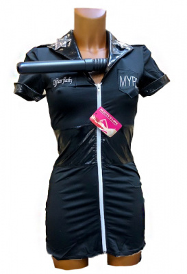Set innehållande polisklänning, stringtrosor och batong. Storlek Small