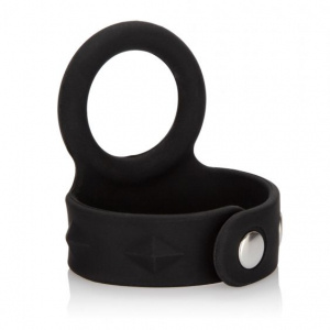 Pung Gung Ring Medium är tillverkad i sammetslen och hudvänlig silikon och har viss flexibilitet. Ringen har snygga detaljer med utformade nitar i det mattsvarta silikonet. Knapparna är tillverkade i nickel-fri metall. Penisringen har innerdiametern 3 cm. Remmen för pung kan knäppas så att innerdiametern är ca 3.5 cm till 6 cm.