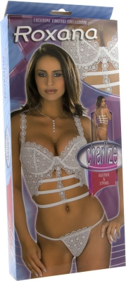 Fräckt vitt set - överdel och string i vacker blommönstrad spets. Storlek Large.