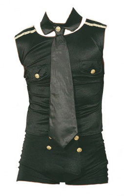 Sexy Male Cop är precis vad det låter som - en sexig polisuniform! Inkluderat i dräkten är det en ärmlös skjorta, ett par korta shorst och en krage med slips. Tillverkad i stretchigt polyester med guldiga detaljer och knappar. Hur läckert?
