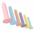 Six In A Row är ett 6-delat dildoset med dilatorer i fina pastellfärger. Varje dildo har sin egen storlek och vikt för bekväm stretchträning i sex nivåer. Tillverkade i sammetslen silikon och lämpar sig för både vaginal och anal användning. Särskilt lämpliga för träning vid underlivssmärta i samband med penetration.