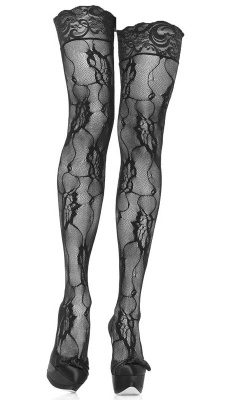 Spetsstrumpor O-S är ett par mönstrade strumpor som smickrar dina ben och gör dem förföriska och sexiga. Dessa strumpor har en vacker spets upptill och blomrankor som slingrar ner mot foten. Strumporna är gjorda i ett mycket finmaskigt nät.