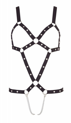 Strap Body S-L är en rembody med en tuffare look av bred resår, kedjor och nitar. Träs enkelt på då remmarna är stretchiga och töjbara. Kedjorna som går i grenen går att ta loss om man önskar fästa de på annat vis. 70% polyester, 30% elastan. Passar storlek small/large.