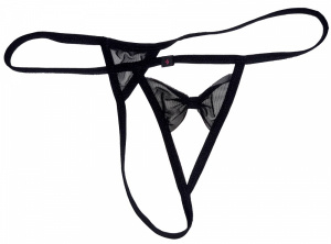 String Bow SM är ett par sexiga stringtrosor med söt rosett framtill som pryder venusberget. Rosetten är i meshtyg och blir till en fin och blickfångande detalj. Trosorna är svarta och i storlek small/medium.