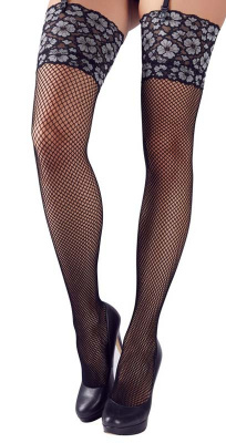 Strumpor Flower S/M är ett par snygga stay-ups med vacker blomdekor i överkanten. Stay-upsens nätdesign har små maskor, de har en snygg söm baktill och blommornas blad har en fin silvrig färg. Den breda dekorkanten är ca 12 cm hög och gör att de är bekväma att bära. Storlek small/medium.