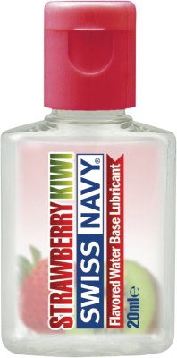 Smaksatt, vattenbaserat glidmedel. Jordgubb/kiwi. Liten flaska på 20 ml.